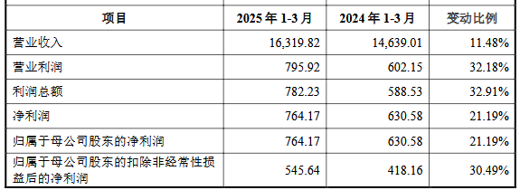 2025年1-3月,公司实现营业收入16,319.82万元,同比增长11.48%;归属于母公司所有者的净利润为764.17万元,同比增长21.19%;扣除非经常性损益后归属于母公司所有者的净利润为545.64万元,同比增长30.49%。