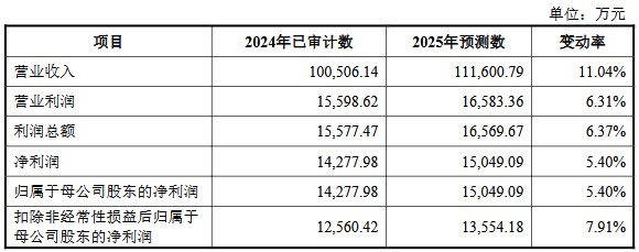 2025年,公司预计营业收入为111,600.79万元,预计归属于母公司股东的净利润15,049.09万元,扣除非经常性损益后归属于母公司所有者的净利润为13,554.18万元。